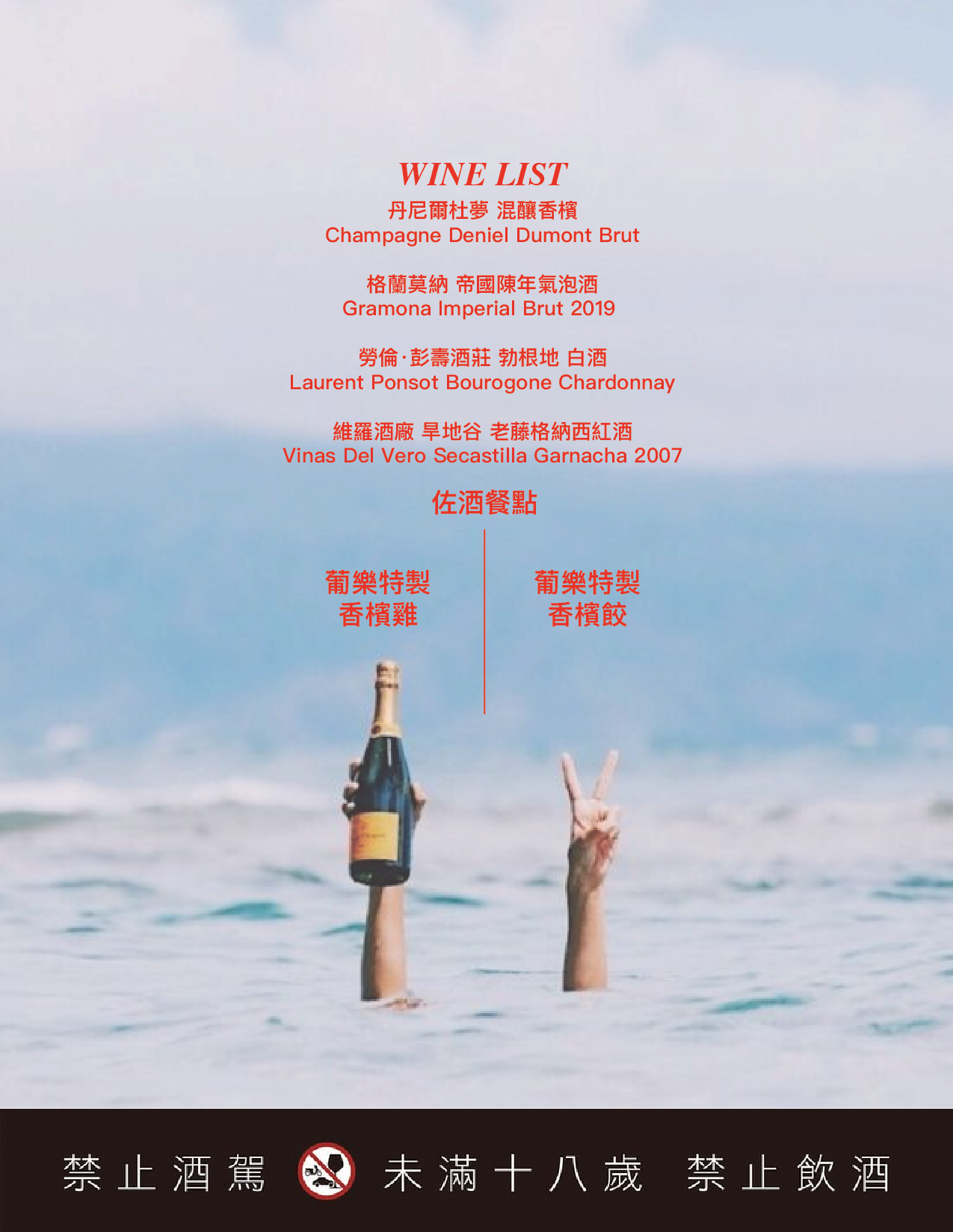 葡樂本次推薦,一款香檳、一款精品氣泡酒、兩款葡萄酒,來搭配特製的葡樂餃子/炸雞,人數有限,請趕快報名~